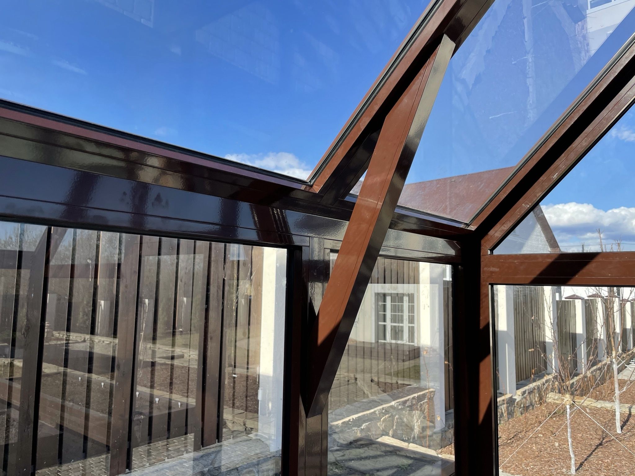 Ширина 3,2 м. из алюминиевого профиля под стекло.