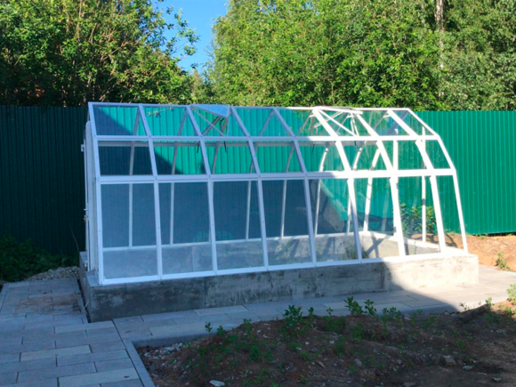 Длина базовой теплицы - 4,0 м. с двойной дверью-купе и двойной форточкой в крыше.